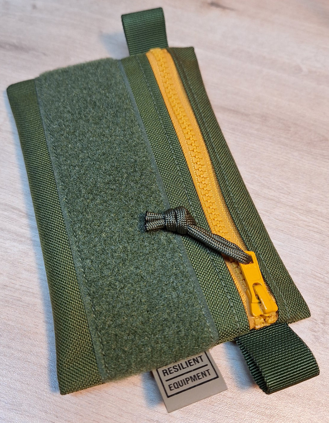 Olive Green Simple EDC Pouch with Gold Zip and Velcro