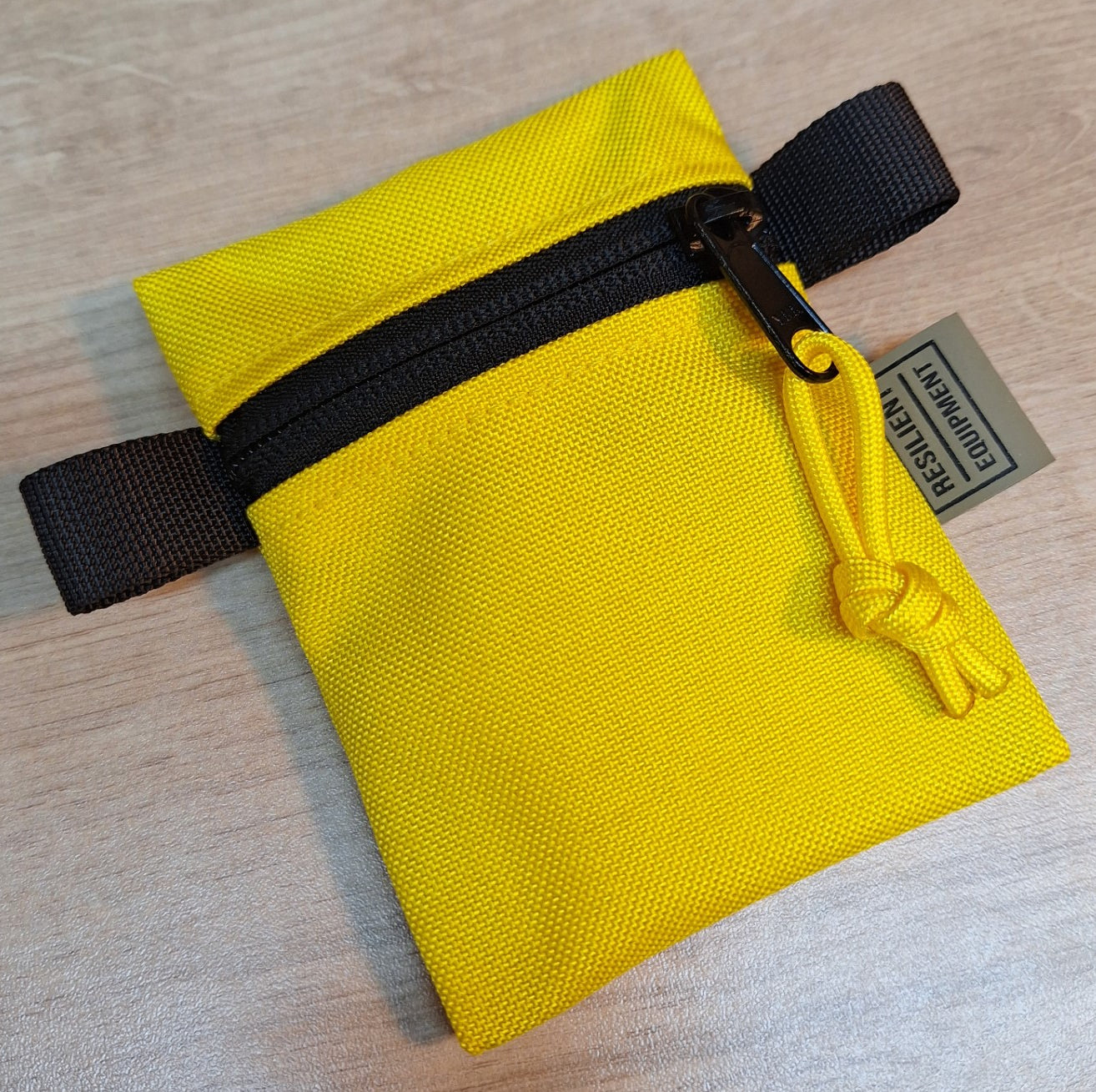 Yellow Mini Pouch with black zip and tabs